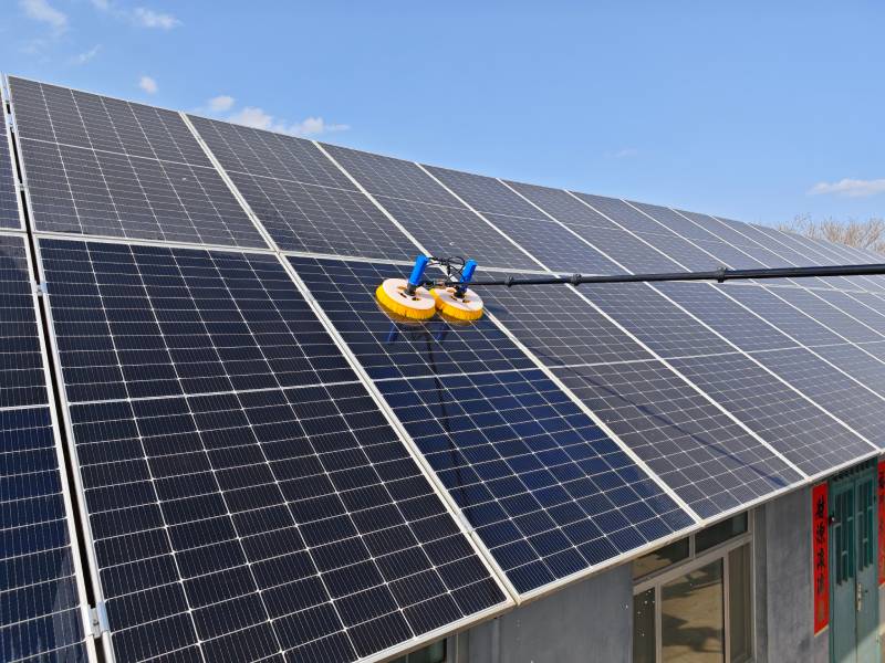 鲁昱智能屋顶光伏清洗设备中,双头光伏板清洗刷具备以下核心参数与特性:伸缩杆长度:支持最长12米伸缩设计,适配屋顶、斜坡等复杂地形,减少人工登高风险。技术亮点:采用双头衡动力技术,可同时清洁两个区域,效率提升30%;干湿两用设计适配干燥灰尘与湿润污渍,PBT刷丝柔韧耐刮,避免损伤光伏板表面。智能化配置